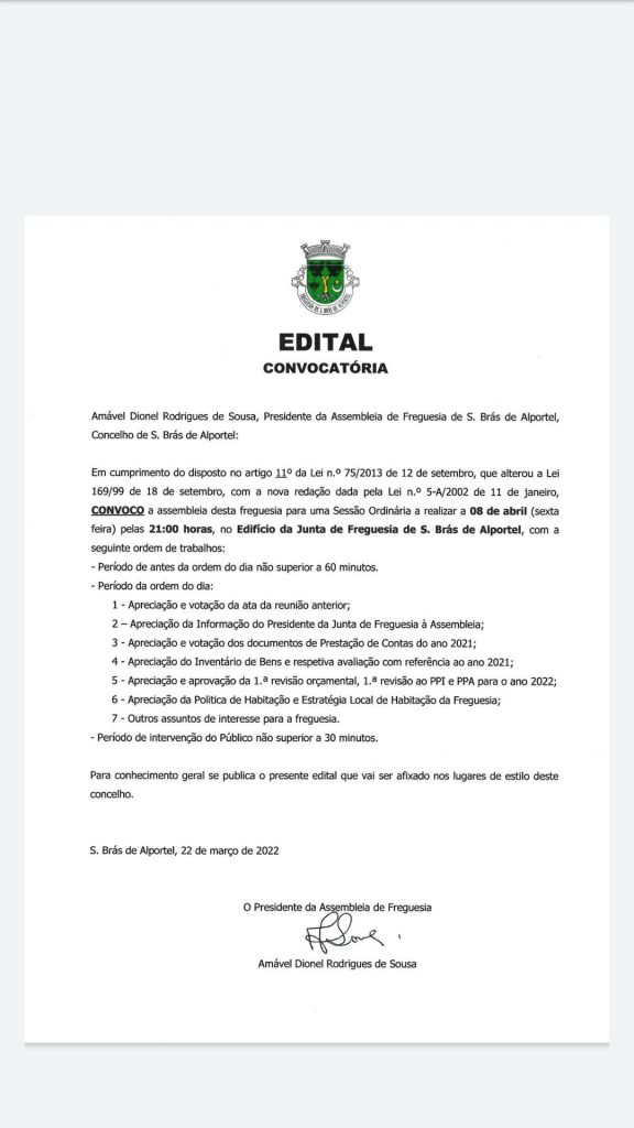 – Senhor Presidente da Assembleia de Freguesia Dr. Amável Sousa;
